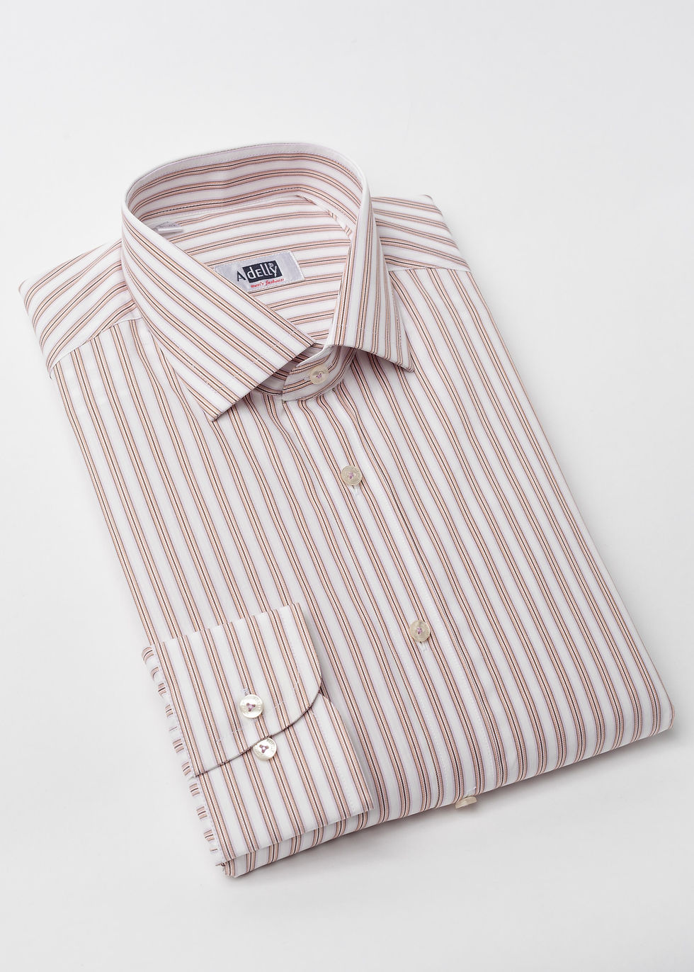 Риза с дълъг ръкав в бяло, бежово и розово райе